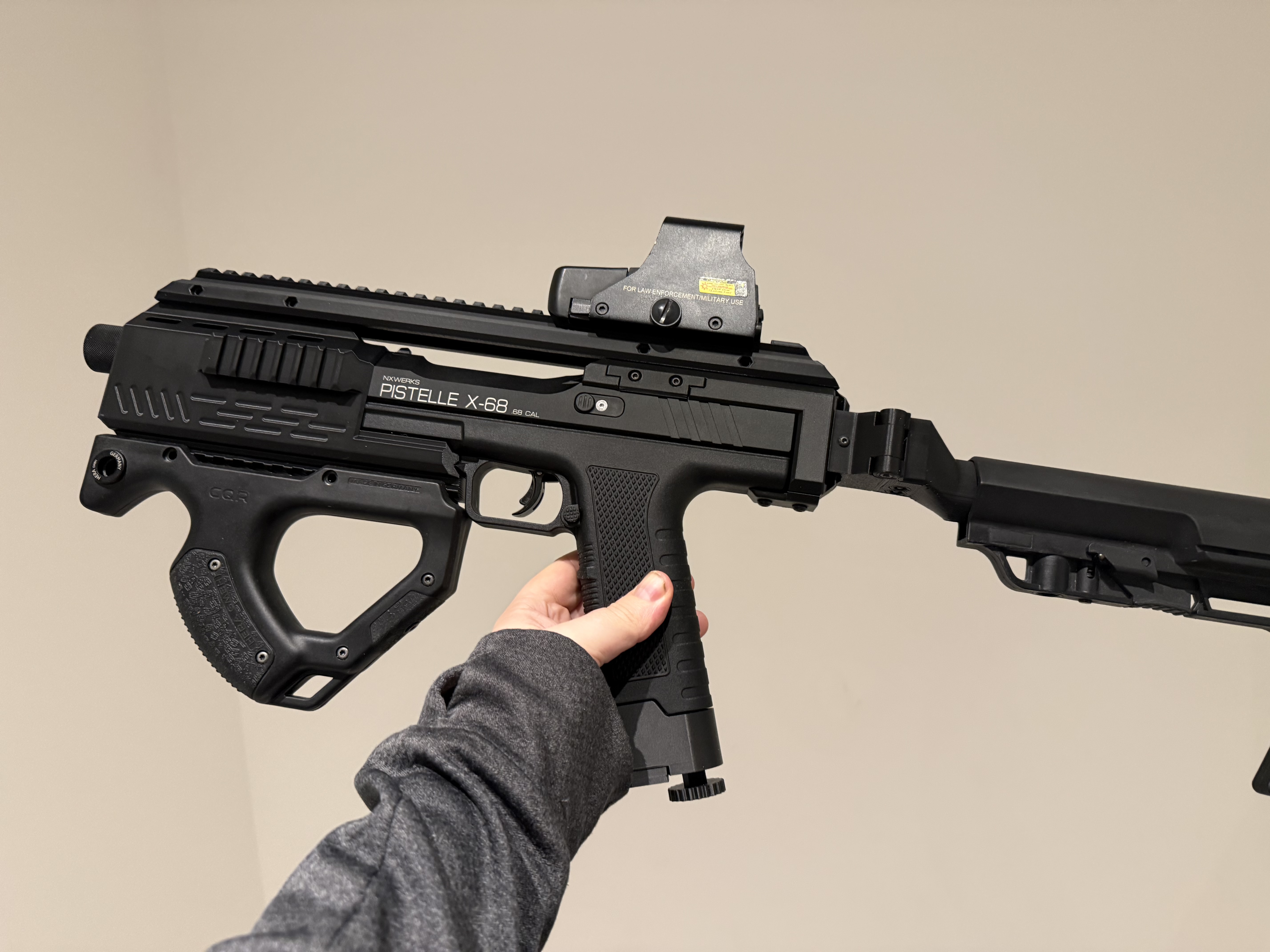But that’s not all! The Pistelle x68 also includes a variety of accessories to enhance your experience. From tactical rails for mounting additional gear suchs as lights and lasers, to an optional foregrip that can hold an additional magazine.