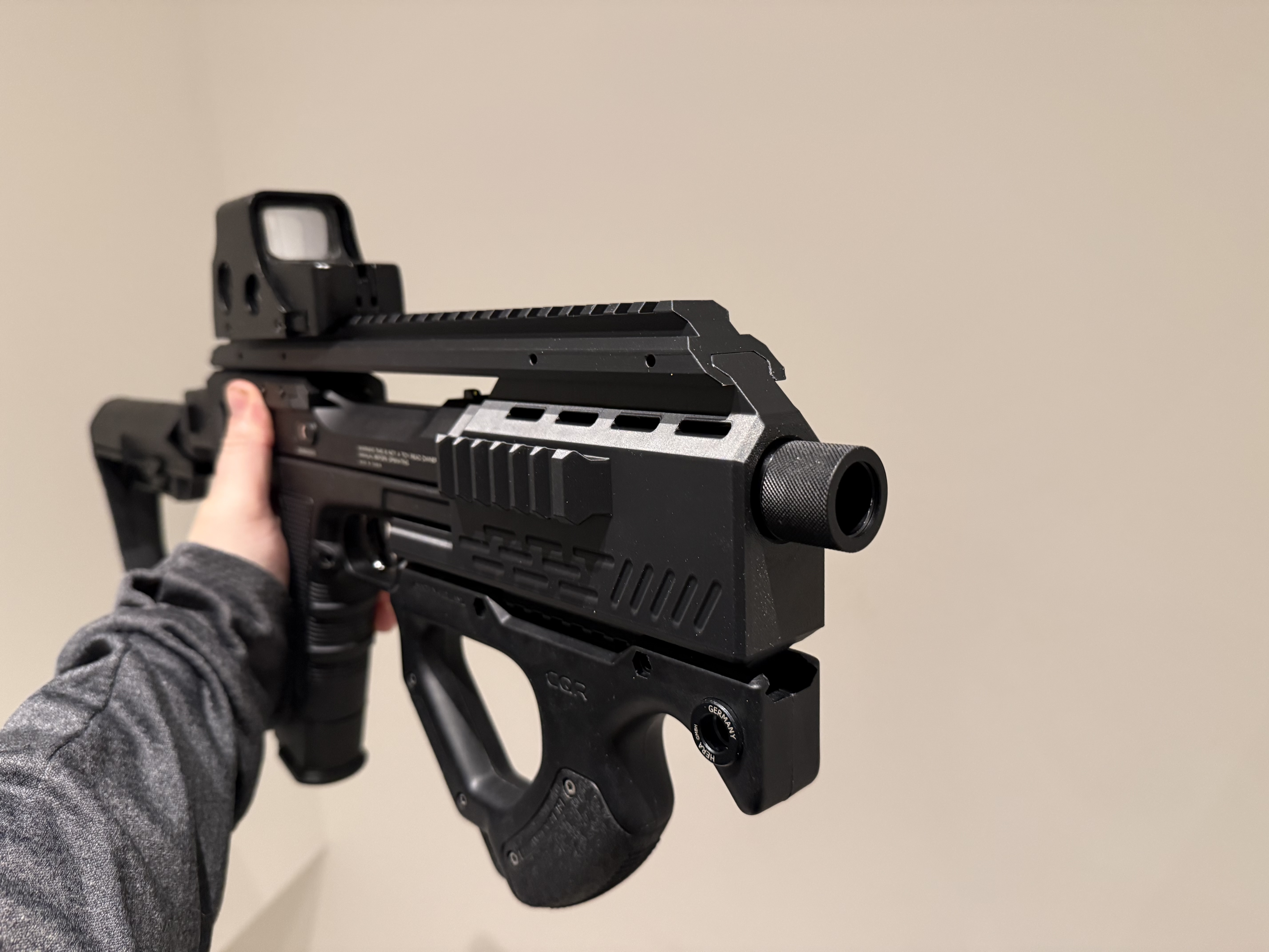 To add even more stability, you can choose to include a folding buffer tube, so that you can use a stock of your choosing.